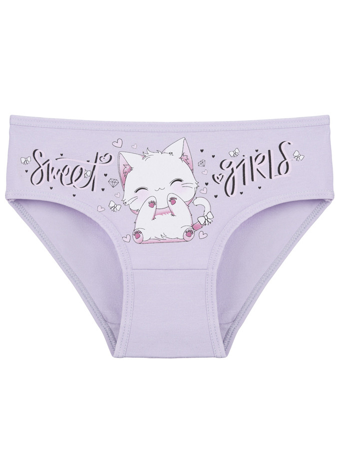 V těchto dívčích kalhotkách ve fialové barvě s potiskem koťátka se budou ty nejmenší cítit každý den skvěle. Díky bavlně jsou dívčí kalhotky příjemné na tělo. Obsah elastanu zajišťuje, že kalhotky dobře drží tvar, perfektně sedí a výborně se nosí. dívčí kalhotky jsou z příjemné bavlny s elastanem, která Vám zajistí komfort při nošení 95% Bavlna/5% Elastan klasický střih v pase a v nohavičkách příjemná elastická gumička vnitřní část klínu zesílená potisk na předním díle